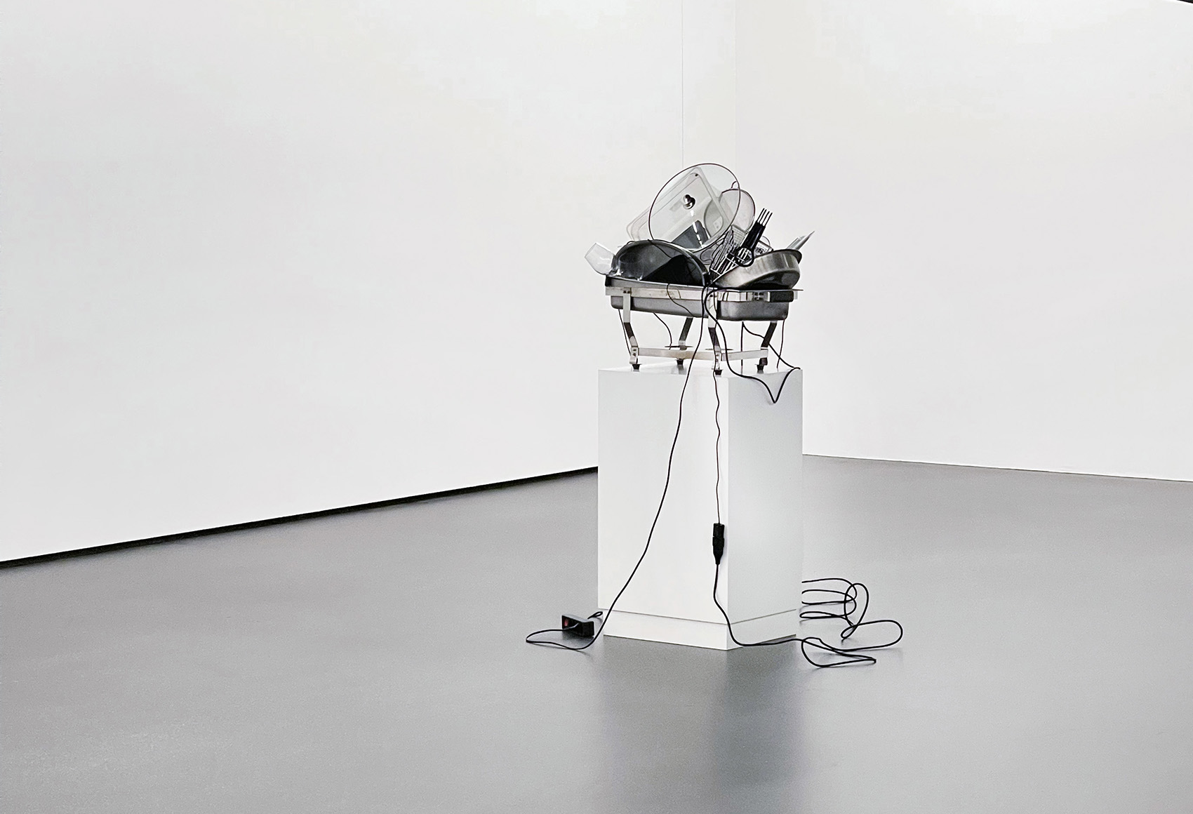 Dominic Michel verwendet für seine Video-Installation «Happy Hour» (2025) Aufnahmen, die in einer After-Work-Bar im Finanzviertel von Panama City gedreht wurden. Damit kreiert er ein Arrangement des überhitzten Finanzsektors und der vielfältigen Aktivitäten an dessen Peripherie. Ein kleiner Bildschirm, eingebettet in einem Gewirr von Catering-Geräten, leuchtet gelb und orange. Auf dem Bild sind undeutliche Bewegungen zu erkennen, der gedämpfte Soundtrack ist entschleunigt. Die prekär aufgestapelte Assemblage kombiniert zweckmässige Dinge, die als Sinnbild für gesellschaftliche und geschäftliche Interdependenzen stehen. Das Geräusch eines Ventilators ist unaufhörlich — herrscht hier Kater- oder Endzeitstimmung? Die Jury würdigt mit einem Förderbeitrag von CHF 10’000 die visuelle Poetik und Symbolik der tropischen Szene sowie die mediale Umsetzung. Aoife Rosenmeyer