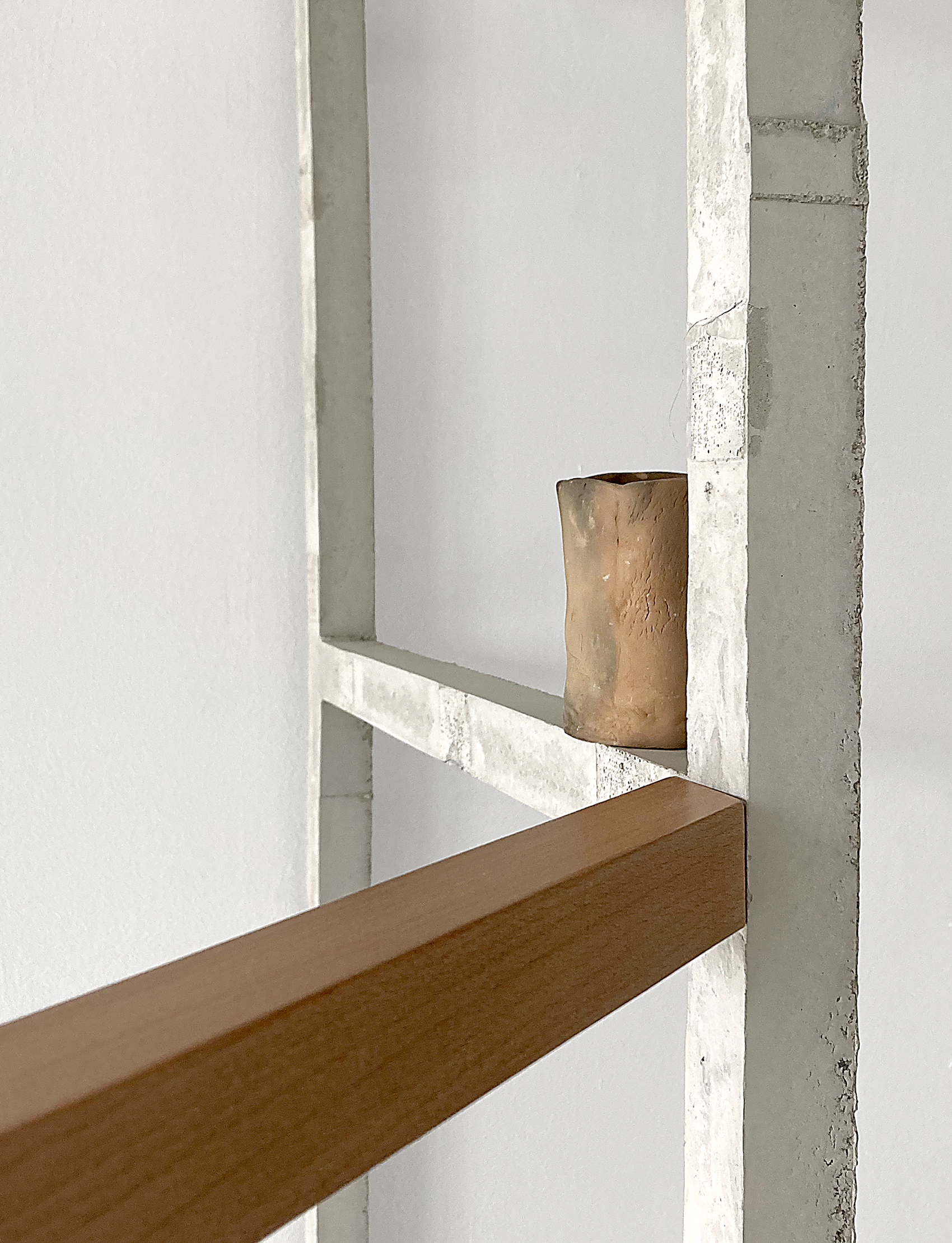 Eva Maria Gisler zeigt ihre Installation «Infrastrukturen» (2024) — eine Kombination aus leichten und schwereren Elementen, die gefundene und hergestellte Materialien, harte und zarte Komponenten miteinander verbindet: Beton trifft auf hauchdünnen Kunststoff und findet so zu einem Gleichgewicht. Gislers Skulpturensammlung nimmt selbstbewusst ihren Platz im Museumsraum ein; aus manchen Blickwinkeln teilt sie den Raum dominant, aus anderen sieht man nur eine feine Silhouette. Eine fruchtbare Spannung entsteht — handelt es sich um Architektur oder Skulptur, um etwas Stabiles oder Fragiles? Der gekonnte und subtile Umgang mit Farbe und Form erzeugt Kompositionen, die lyrische Erzählmöglichkeiten eröffnen. Die Jury verleiht der Künstlerin einen Werkbeitrag von CHF 30’000 für ihren souveränen Umgang mit Material und Raum, Inhalt und Imagination. Aoife Rosenmeyer