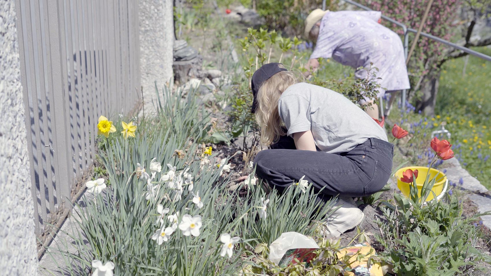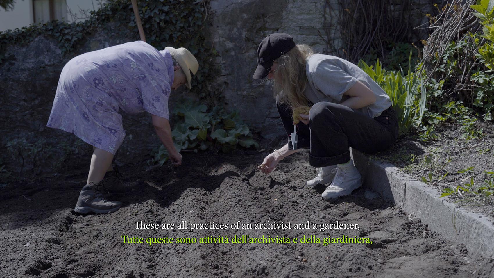 Lea Schaffner erzählt in ihrem Videoessay «Besuchen gehen, Going on a Visit, Andare in Visita» (2024) von der Zeit, die sie mit Elvira Salis verbrachte. Salis verlor ihr Haus beim Bergsturz von Bondo, pflegt ihren dortigen Garten aber immer noch. Wie der Titel andeutet, kam die Künstlerin nach Bondo, um ein Dokumentationsprojekt durchzuführen. Dabei entdeckt sie Gemeinsamkeiten und Unterschiede zwischen ihrem archivarischen Ansatz und Salis’ sorgfältiger Gartenarbeit. Archiv und Garten sind nützliche Metaphern und Methoden, um über eine Zukunft in einem instabilen Umfeld nachzudenken. Mit offenen Worten beschreibt Schaffner die Vorzüge und Mängel ihres theoretischen Ansatzes, wenn er in einer realen Umgebung angewendet wird, sowie den Einfluss der Besucherin auf den Ort, den sie bereist. Die Jury vergibt einen Förderbeitrag von CHF 10’000 für die Weiterentwicklung dieser durchdachten und engagierten künstlerischen Praxis. Aoife Rosenmeyer
