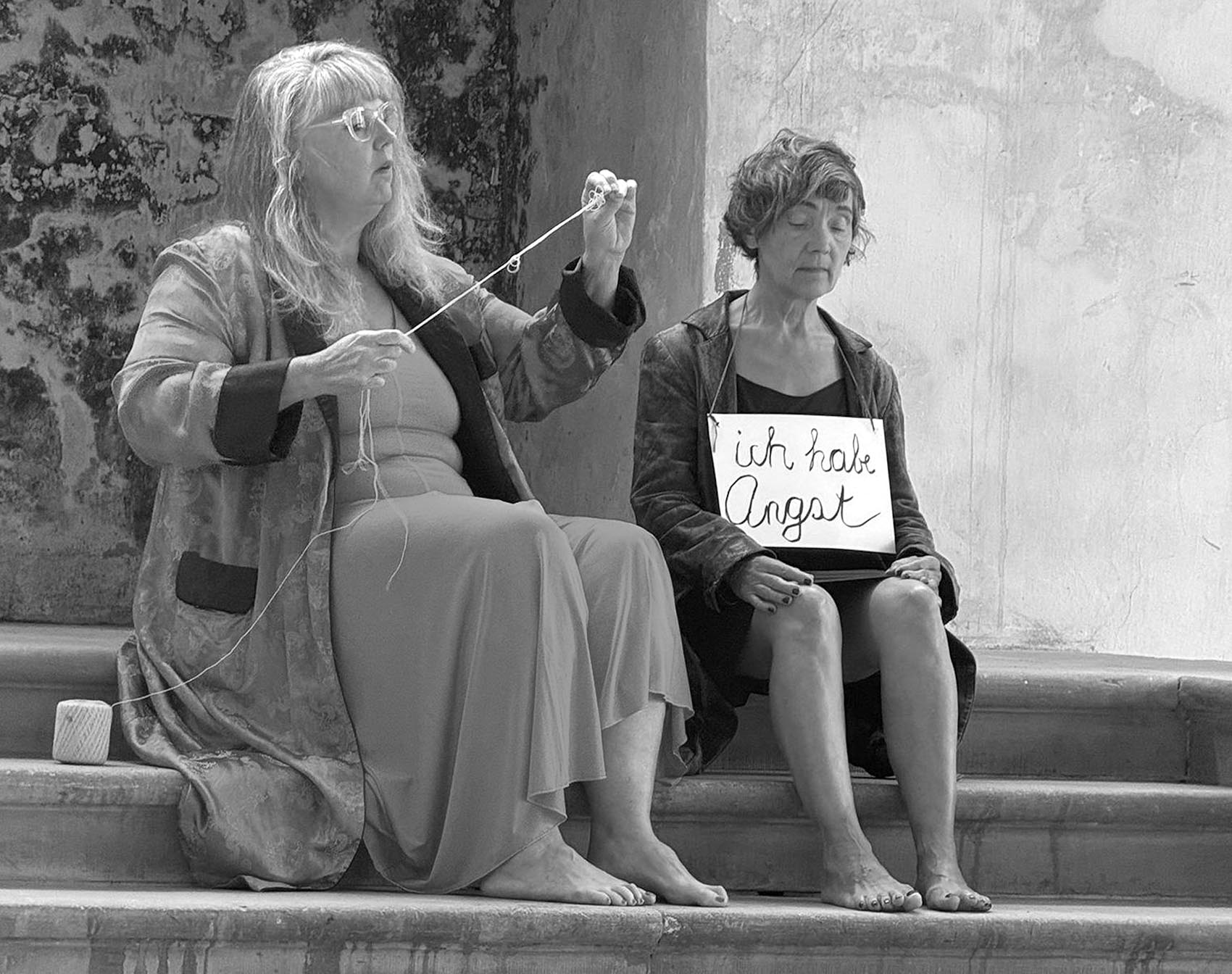 Visuals: Porträtbilder © Lilian Frei. Performance «Am Puls» © zVg. Performance «Connection» mit Lara Buffard, Synagoge Hegenheim, France, 2025 © Ursula Scherrer. Performance «Passaparola» Bahnhofstrasse, visarte opencall, 2022 © De LosSantos